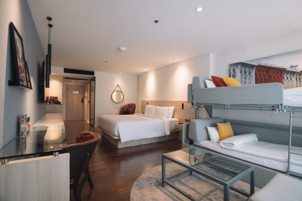 For families, the Family Room is designed for delight. It’s guaranteed to elicit a chorus of joy from the little ones with its fun bunk beds. Complemented by a cozy living zone and a large master bed, it’s a space where the whole family can relax on cloud-like bedding. Coupled with the genuinely warm and impressive service from the staff, our Patong getaway felt more special than ever before.