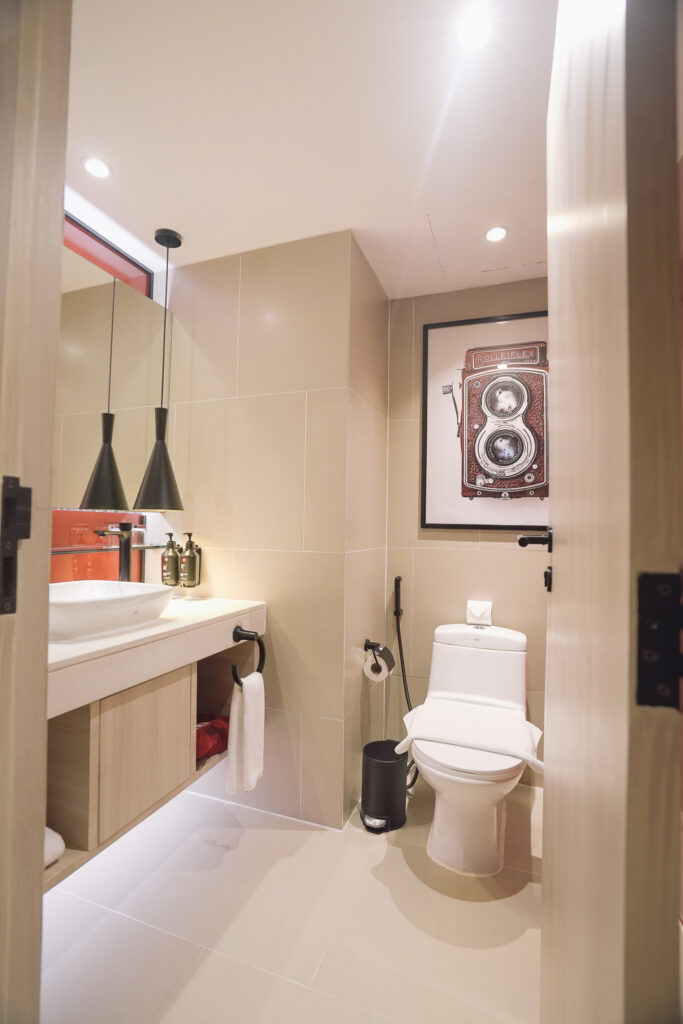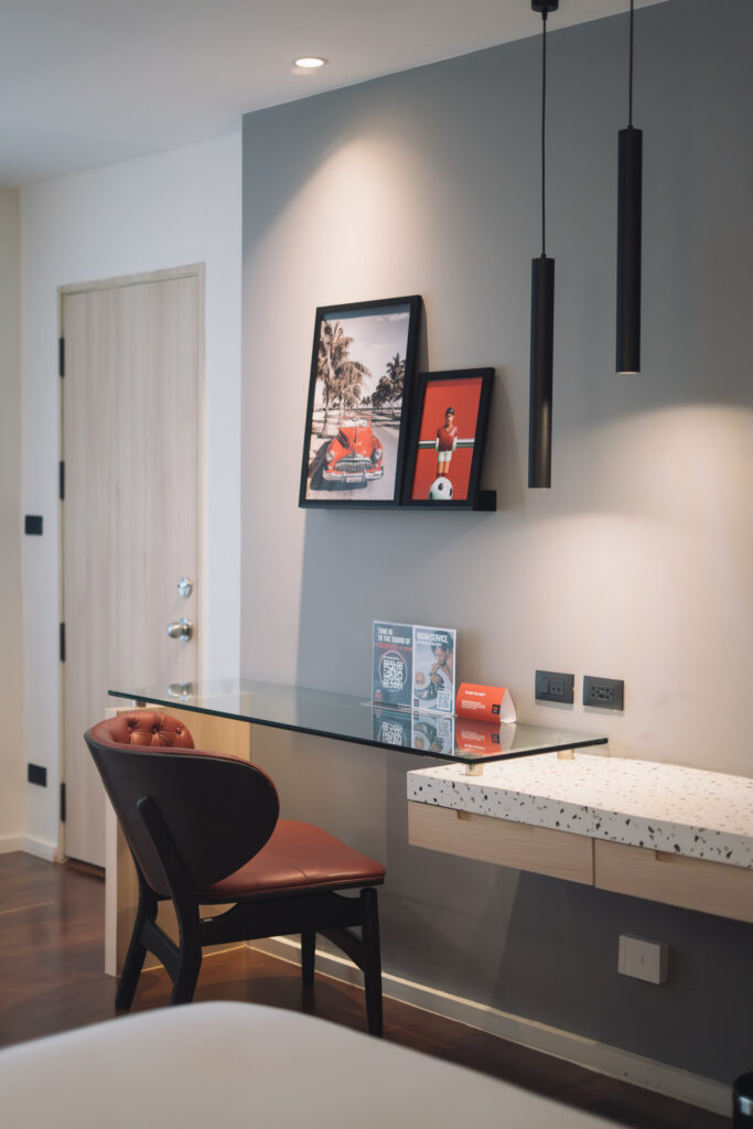 Stepping into the lobby, the chaos of the outside world melts away, replaced by a sense of airy grandeur beneath soaring ceilings. Our eyes were then drawn to a gleaming red Tuk-Tuk—yes, red again—parked as a bold centerpiece. Throughout the property, a curated gallery of photographs takes you on a visual journey across Thailand, celebrating its art, culture, and stunning landscapes. And woven through it all is that same, deliberate splash of red—a visual thread that ignites a sense of discovery and continually captivates the eye.